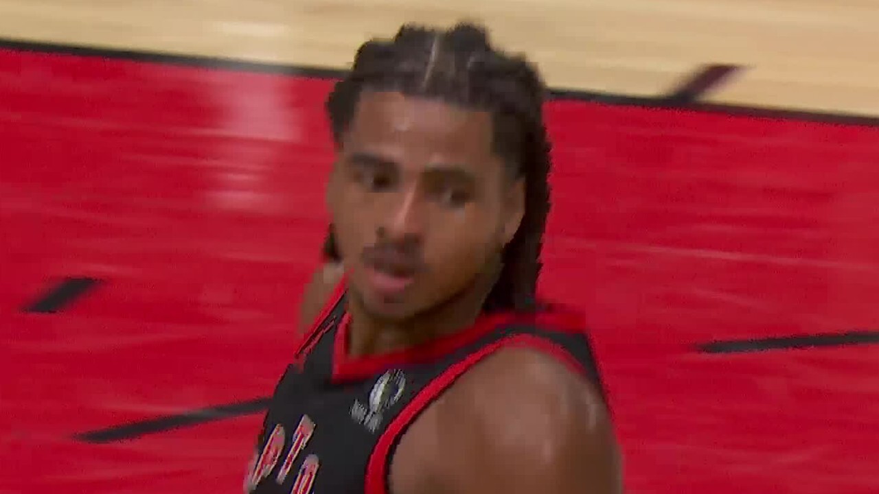 Raptors’ Murray-Boyles throws down transition jam at end of first half